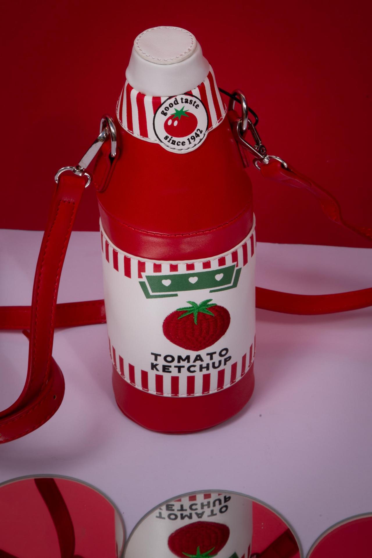Une pochette statement audacieuse façon sauce tomate, fraîche et pleine de fantaisie.